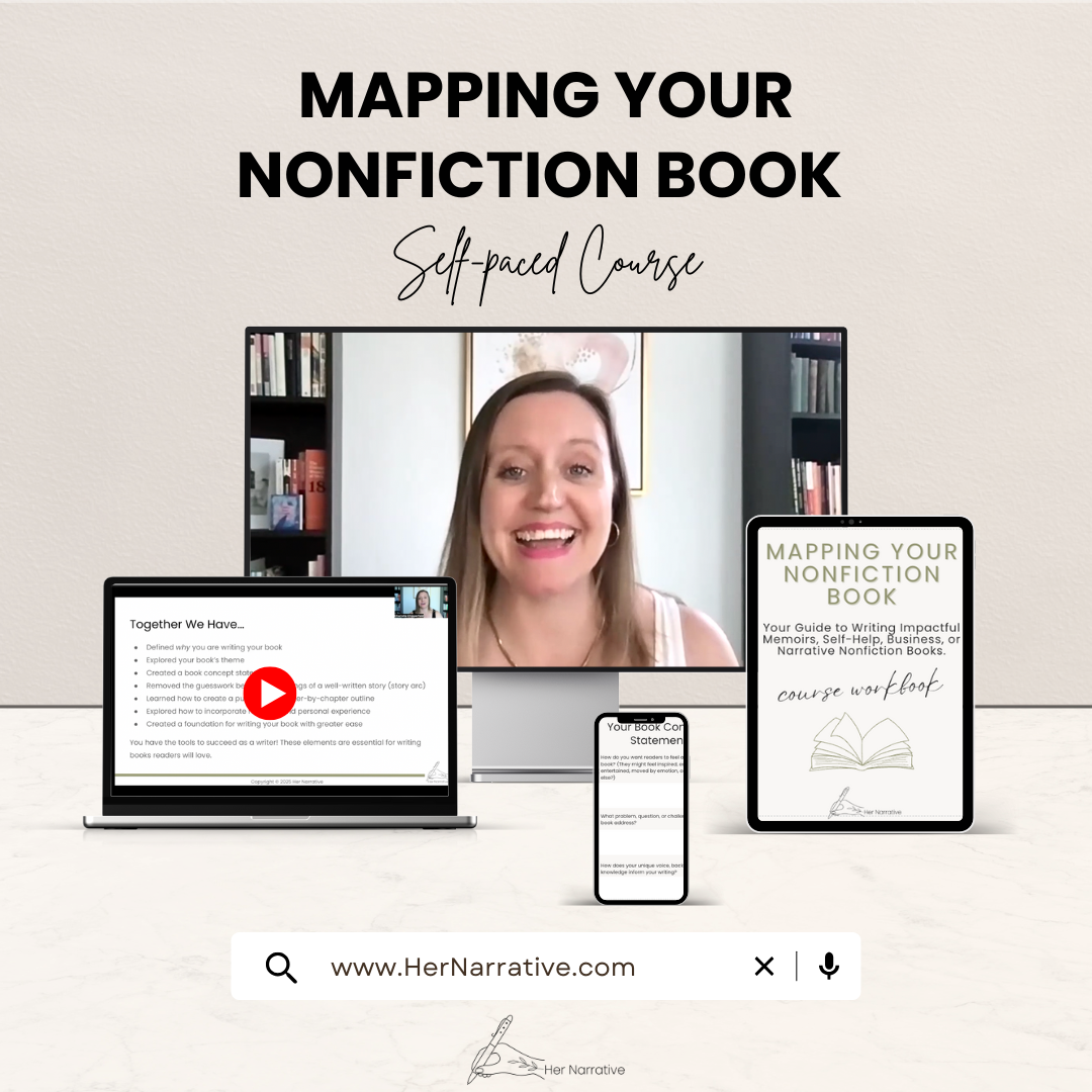 Mapping Your Nonfiction Book is a self-paced course designed to take your from idea to outline. Through four practical sessions filled with guided exercises and expert strategies, you’ll create a detailed plan for your book—one that’s aligned with your purpose and build to carry you through the writing process.